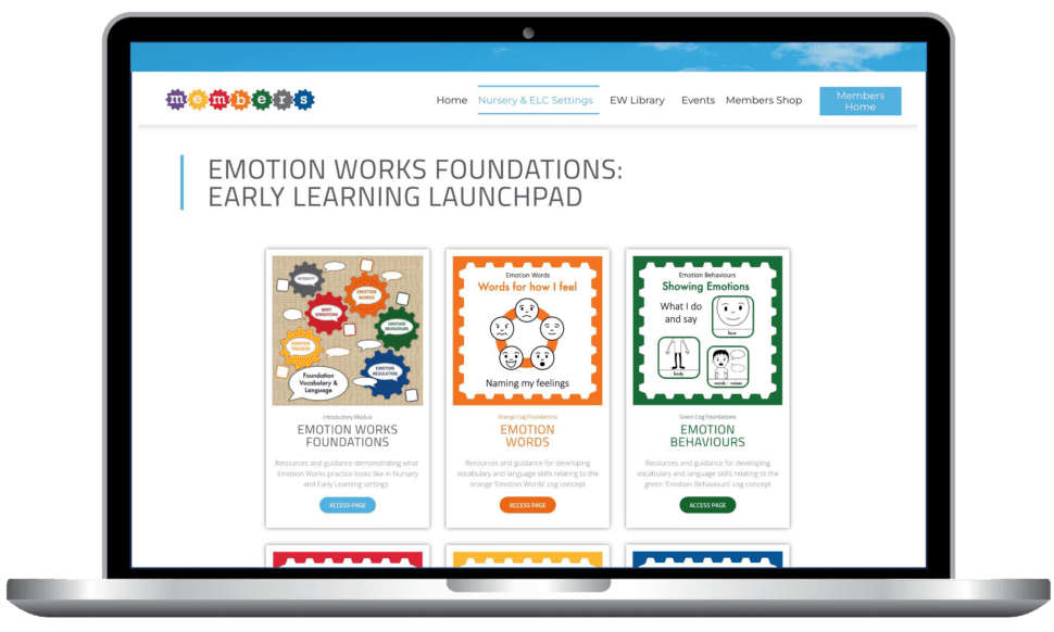 Your lead practitioners will be set up with a Membership account to access our Early Learning Launchpad, which is a dedicated environment for the Emotion Works Foundations program. Access is also provided to a wide range of additional Early Years digital resources and practice ideas in the Emotion Works Library, plus all specialist resources and guidance for pupils with Additional Support Needs.