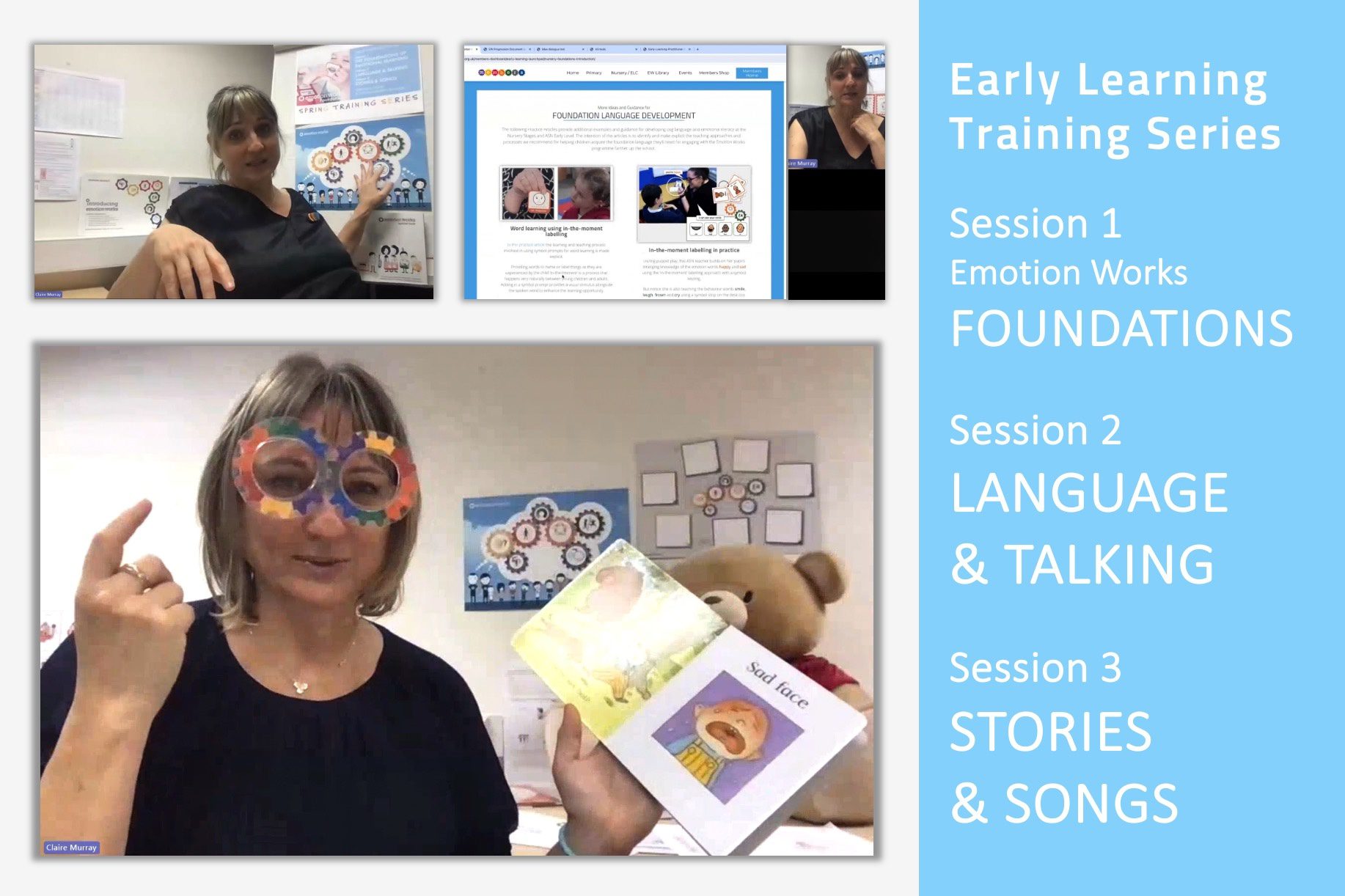 Our 3-part Introductory Training course for Early Years Practitioners is delivered by Programme creator Claire Murray and runs live on a termly basis. The recordings of previous courses are also available to watch in your own time via the Early Learning Members Platform.